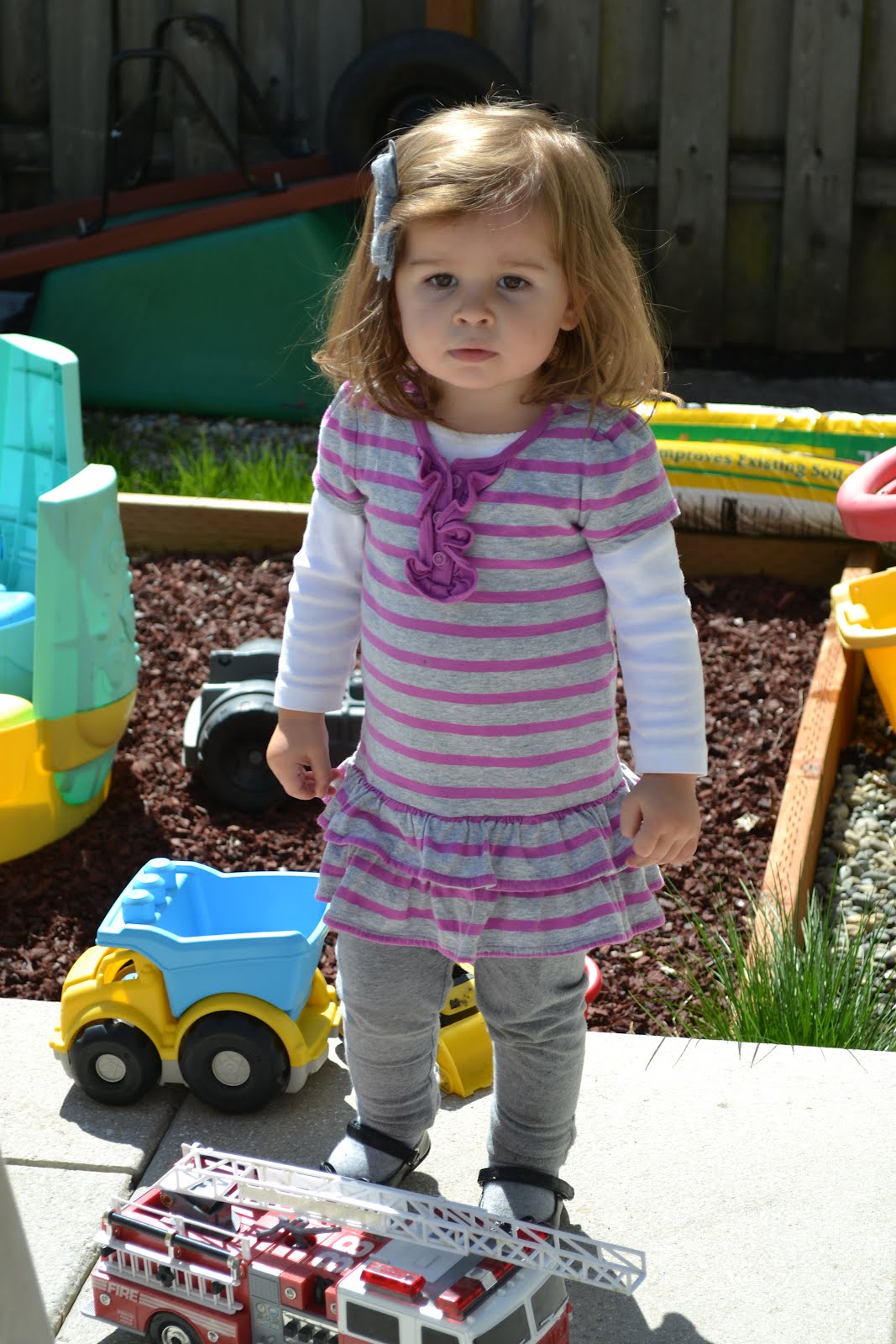 We are all really ready for some spring weather. It has been an exceptionally cold and raining spring this year. The sun came out for a bit on Monday and the kids enjoyed some time in the backyard. Unfortunately the grass is way too wet to play in, but they enjoyed running around on the patio.